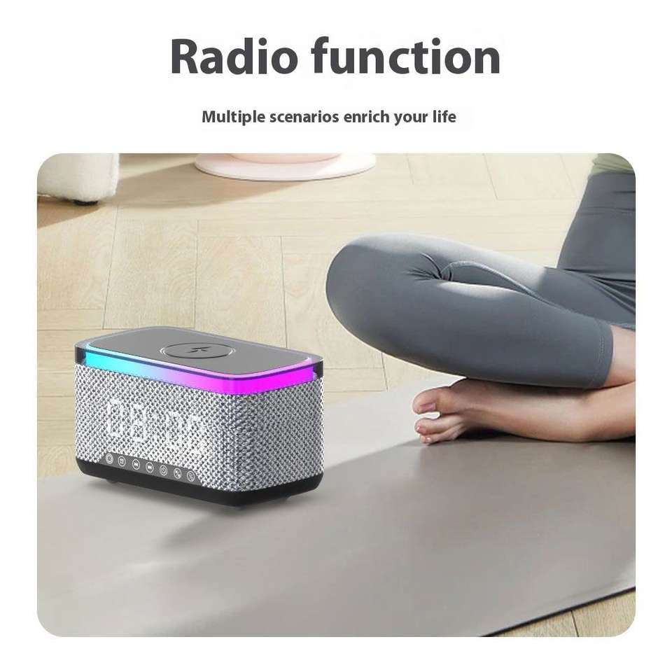 New Wireless Fast Charger with Blue Tooth Speaker Smart Alarm Clocks Sound Light Desk Table Lamp Gift Night for Dorm Kids Adults