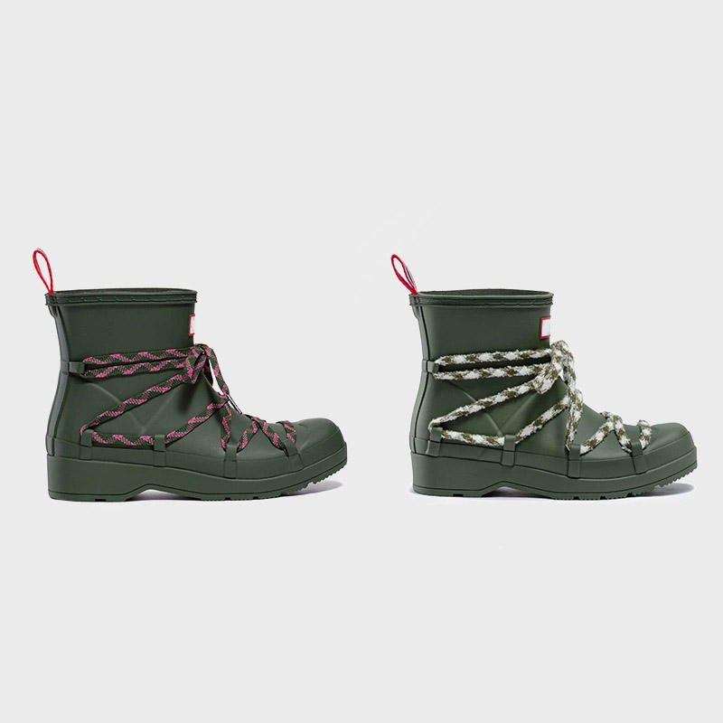 New Women Ankle Rain Boots with DIY Decorative Laces Waterproof Outdoor Shoes Factory Customizable Sample Service Gumboot
