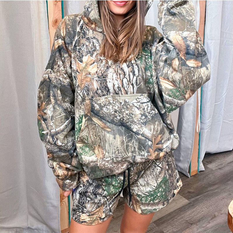 New Women Casual Winter Hooded Knitted Badge Hoodie Shorts Set Custom Logo Warm Fleece
