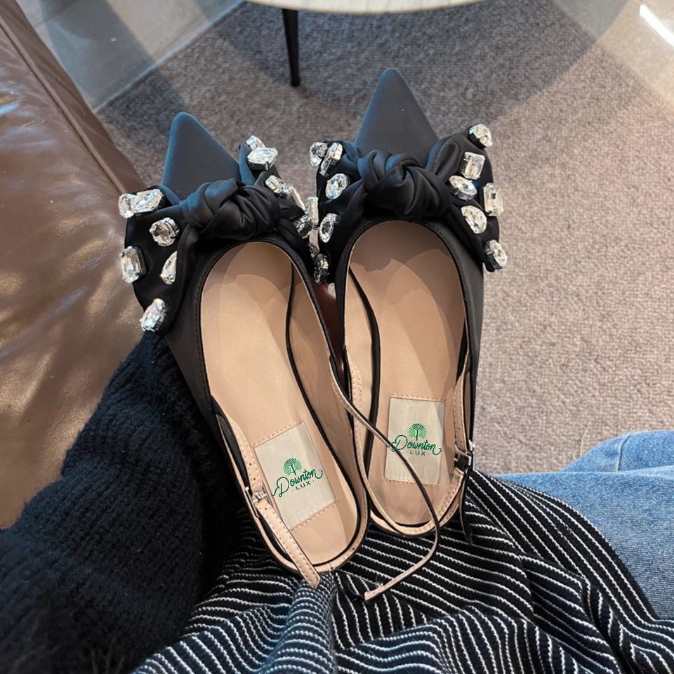 New Women Flat Sandals Bowtie Crystals Denim Fabric Backless Summer Fashion Trend Breathable Light Weight Anti-Slip Casual