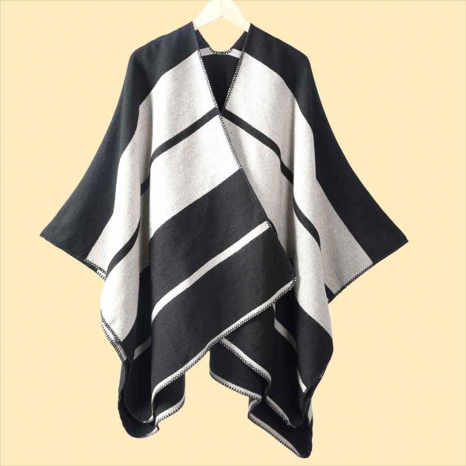 New Women's Autumn Winter Leaf Argyle Scarf Shawl Cape Simple Large Horizontal Stripe Jacquard Cloak Office Warm Blanket