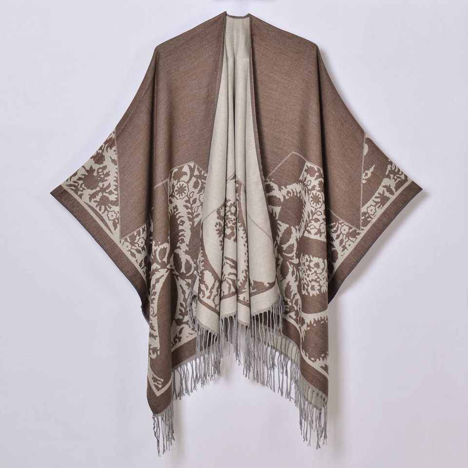 New Women's Autumn and Winter Inverness Retro Argyle Leaf Tassel Shawl Reversible Durable Office Air Conditioning Blanket