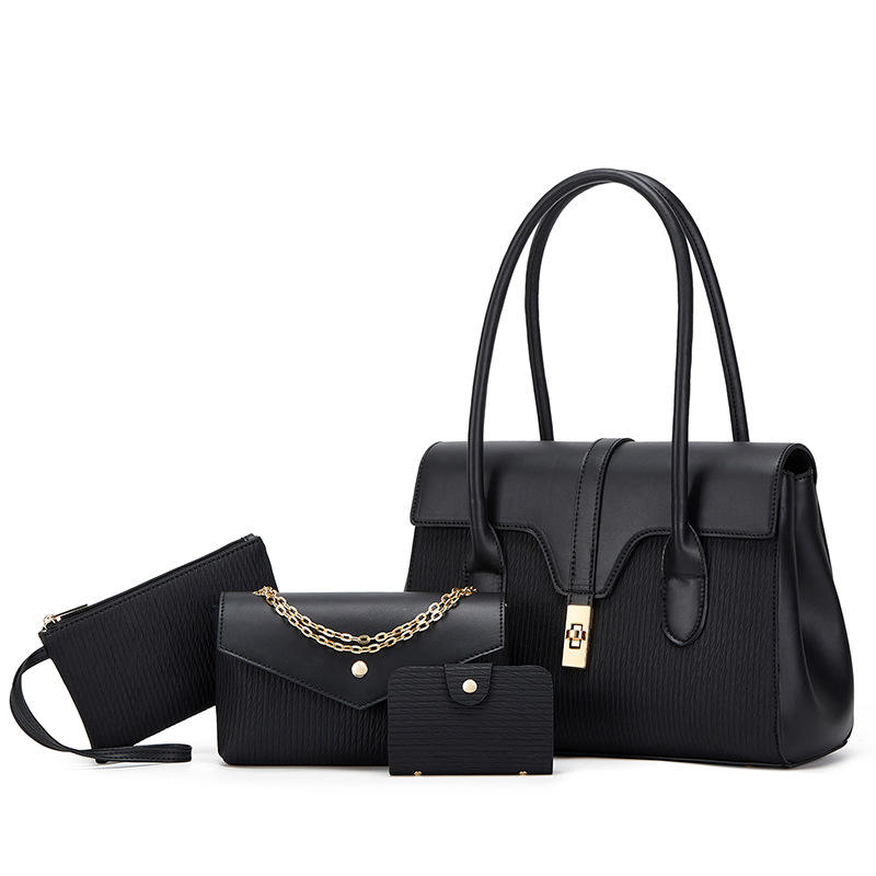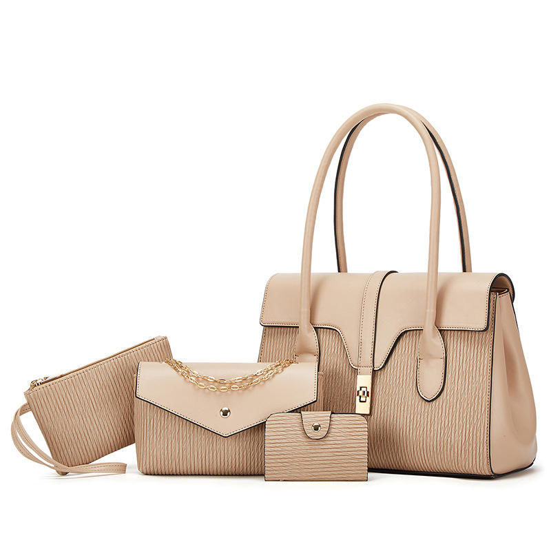 New Women's Fashionable Tote & Shoulder/Crossbody Bags Four-Piece Set with Chains Large Capacity Zipper Closure