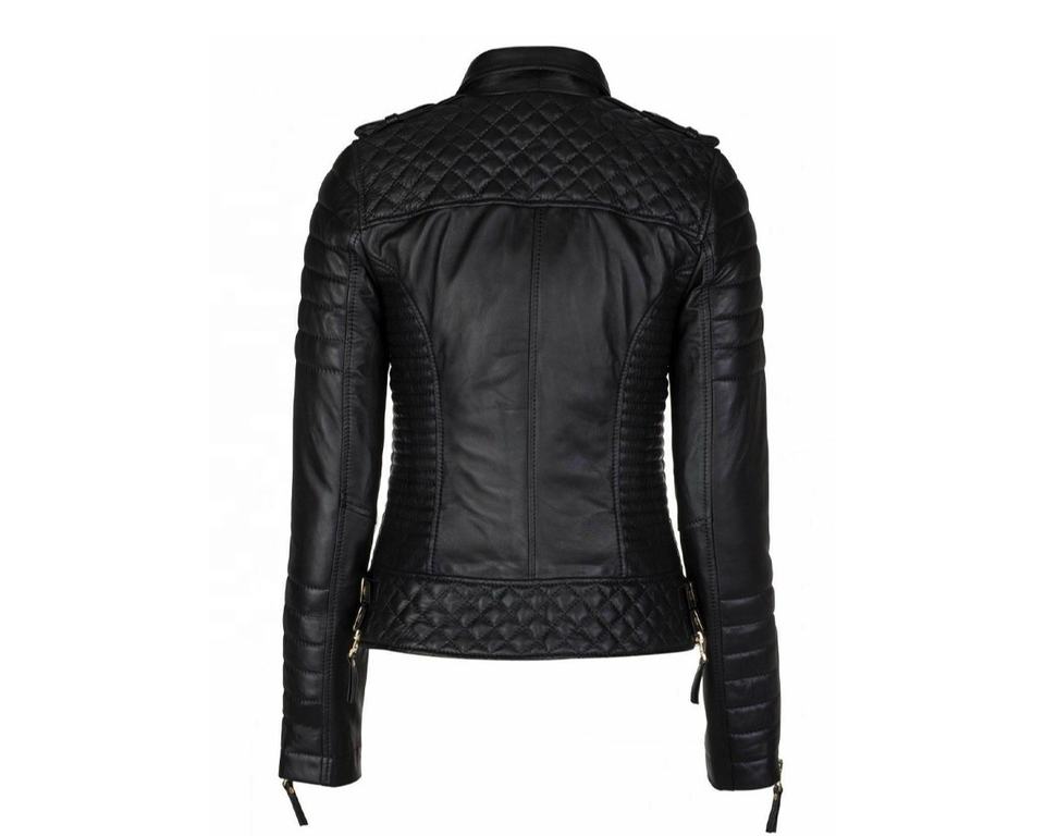 New Women's Genuine Lambskin Leather Raw Breathable Viscose Lining Stylish Slim Biker Motorcycle Jacket