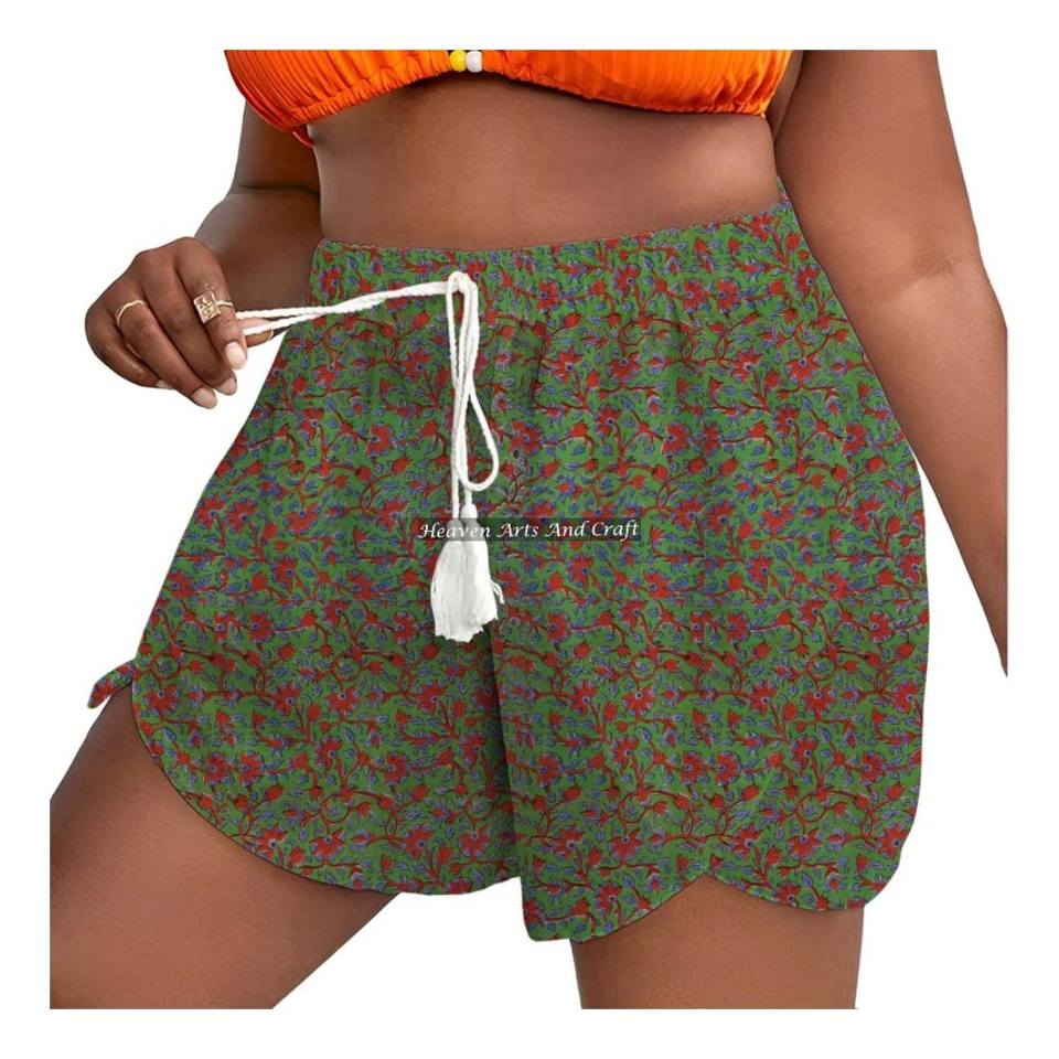 100% Cotton Block Print Fabric Rope Drawstring Wrap Shorts