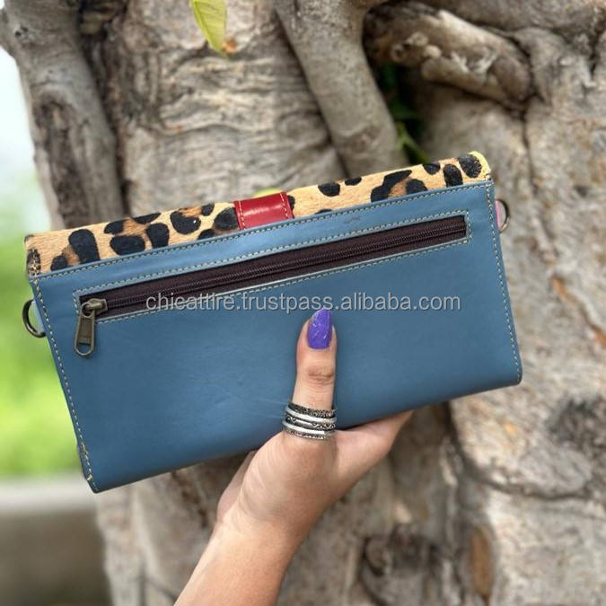Product name:Recycled Genuine Animal Print Leather Colorful Clutch
