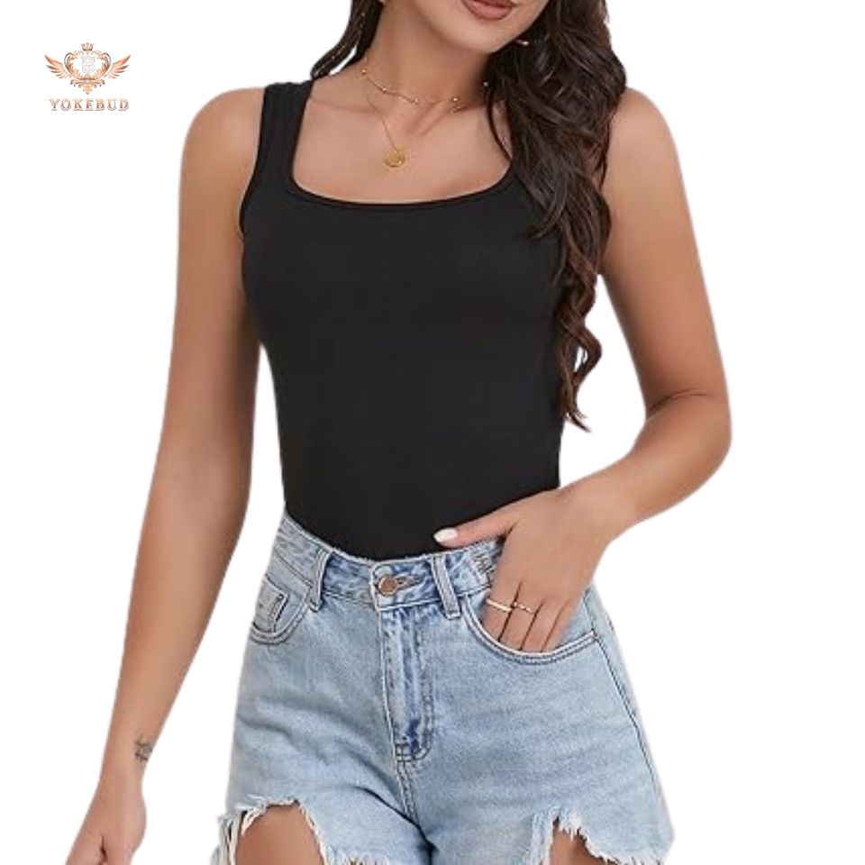 New Women's Square Neck Sleeveless Ladies Tank Top Undershirts Summer Casual Cotton Blend Top OEM Manufacturer Wholesale From BD