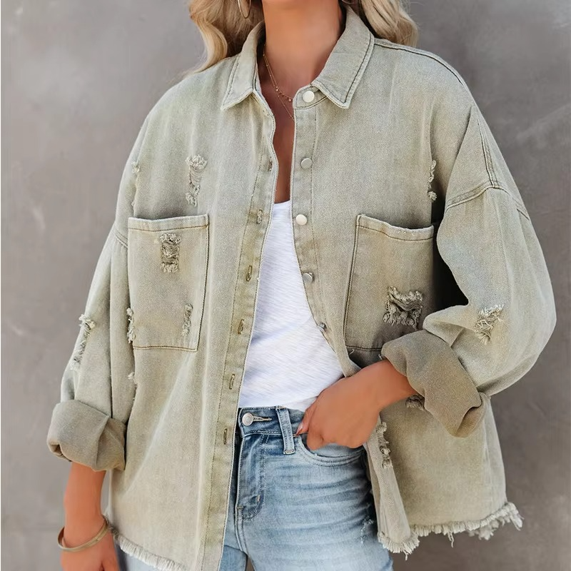 New Women's Sweet Color Denim Jacket Fashion Spring Autumn Lapel Long Sleeves Coat Casual Single-breasted Cardigan Outwear