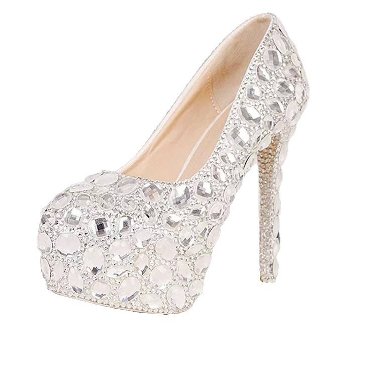 New Women's Waterproof Platform Single Shoes Fashionable luxury diamonds Wedding Evening Party Shoes Not tiring feet high heels