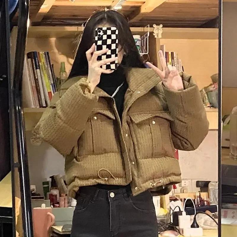 Women's Trendy Korean Style Puffer Jacket for Winter Printed Thickened Down Cotton Coat with Loose Fit New Stylish Padded Jacket