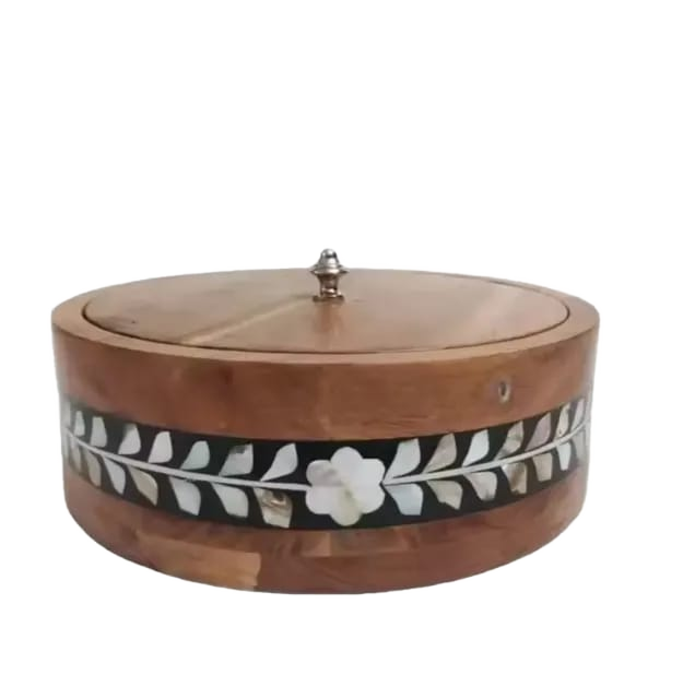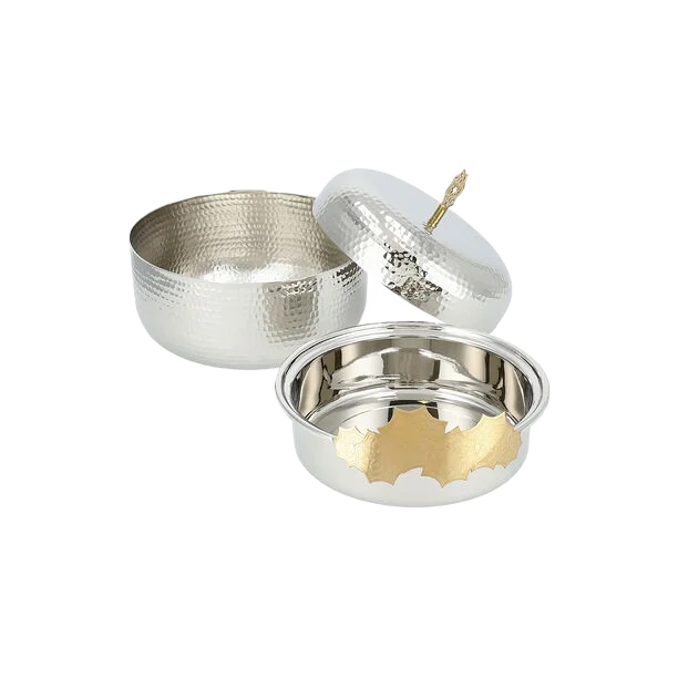 Luxury Arabic Wooden Body Casserole Hot Pot Silver Polished Metal Lid Classic for Wedding Parties Serving Sets Middle East