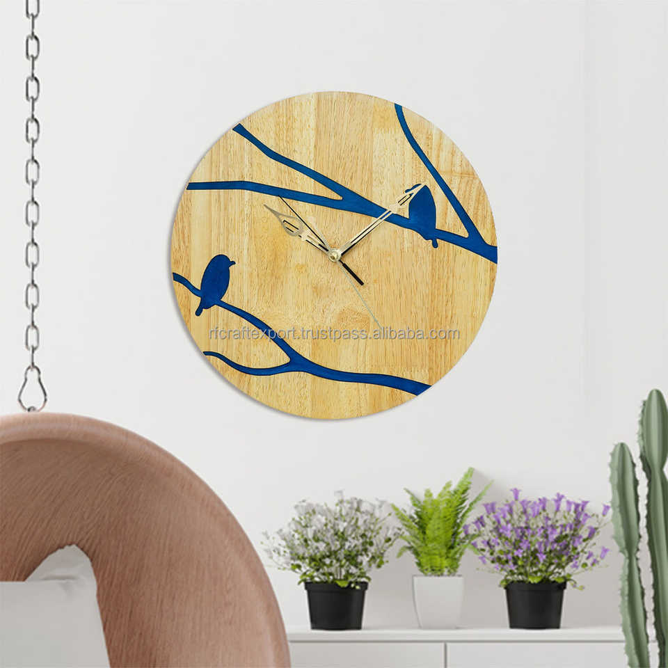 New Modern Style Wooden Wall Clocks Plant Pattern Home Decor for Living Room Office Ticking Desk Clock with Rope by RF Crafts
