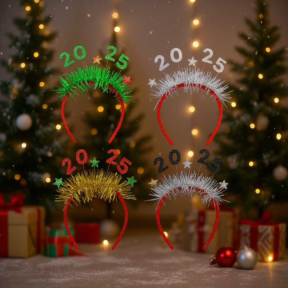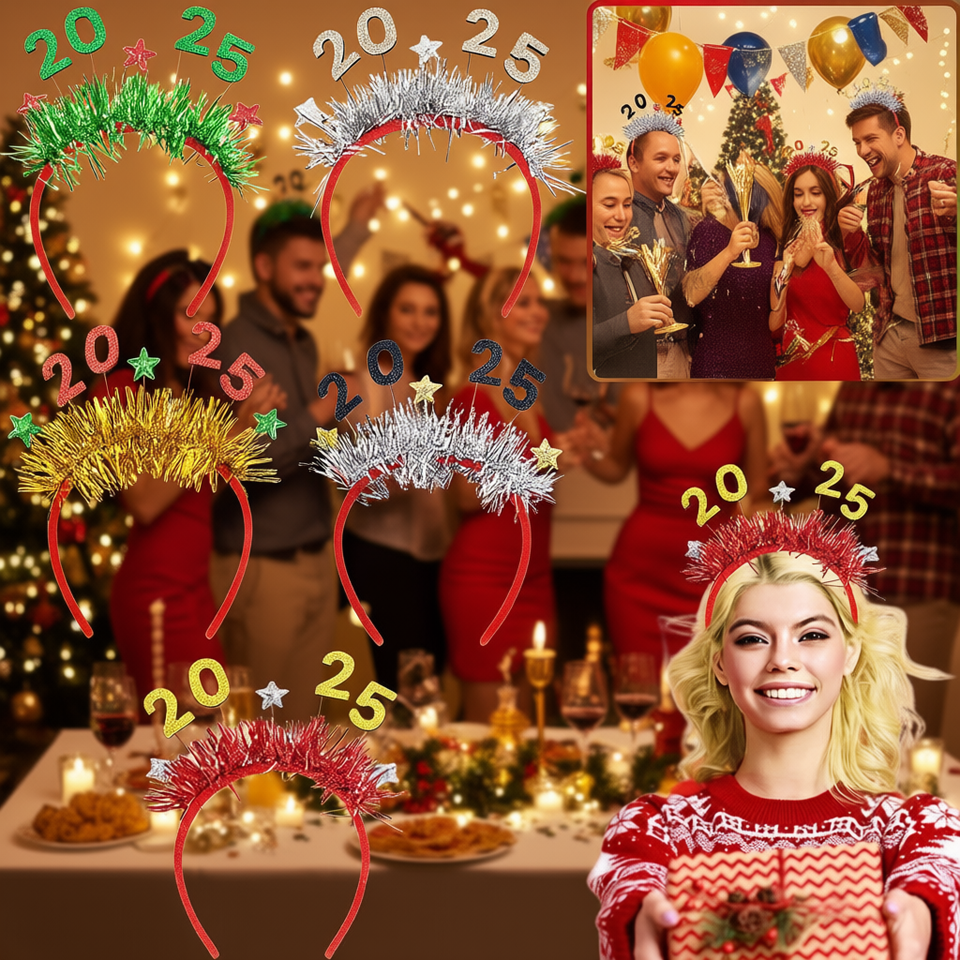 New Year 2025 Glitter Hair Hoop Tinsel Headbands 5Pcs Party Novelties Christmas Accessories for Celebration