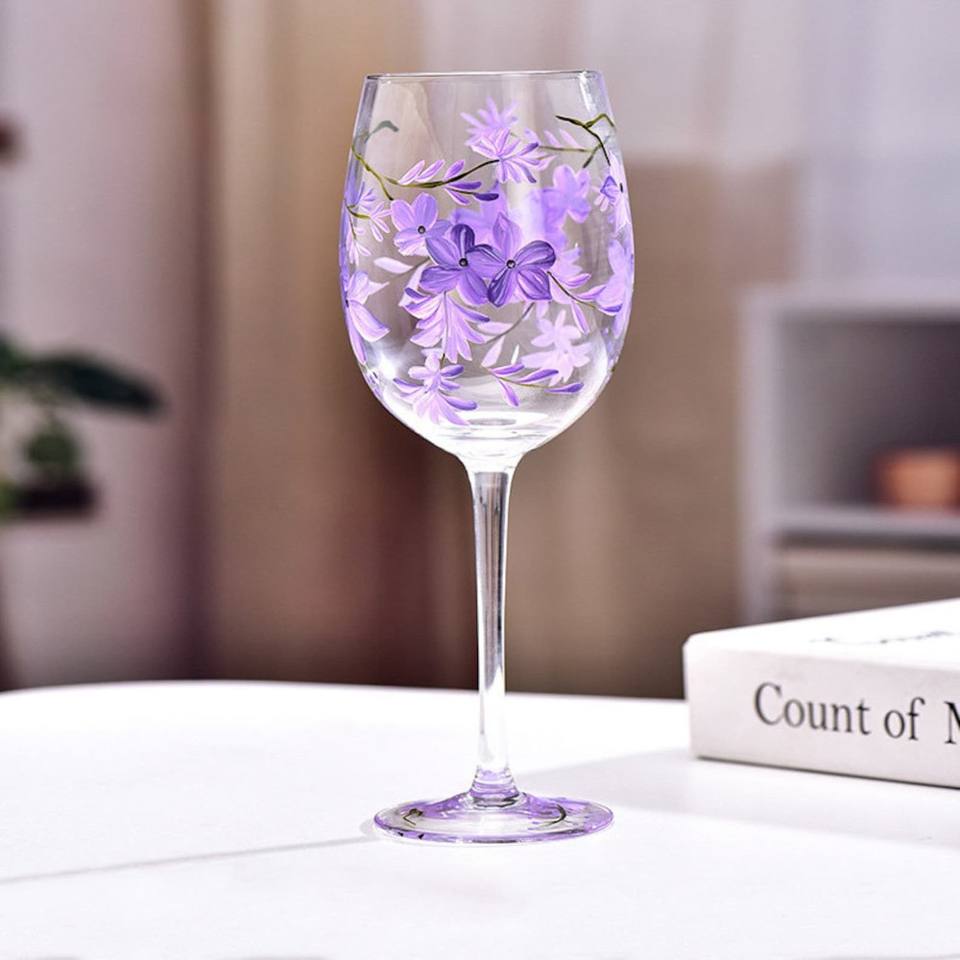 New Year Luxury Handmade Transparent Crystal Clear Wine Glasses Pressed Flower Purplish Eco-Friendly Custom Elegant Glasses