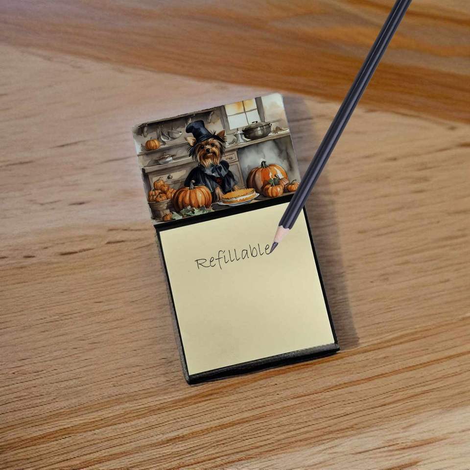 New Yorkie Fall Kitchen Pumpkins Self-Sticky Note Holder Dispenser with Refillable Memo Pads Blank Card & Desk Accessories