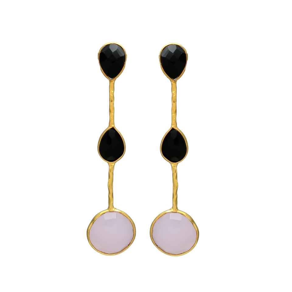 New Arrival Black Onyx and Pink Quartz Dangle Gemstone Earring