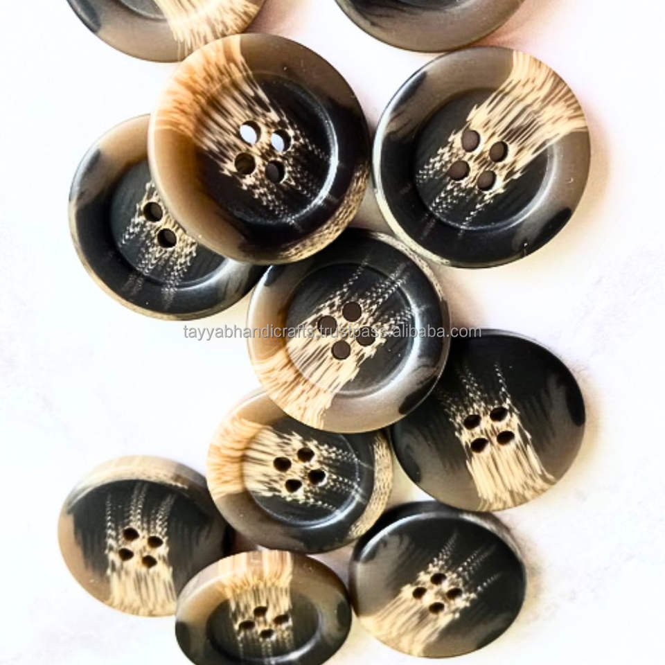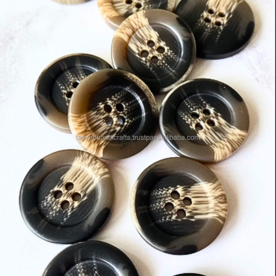 New Arrival Genuine Black Buffalo Horn Button with Natural White Shade by Tayyab Handicraft