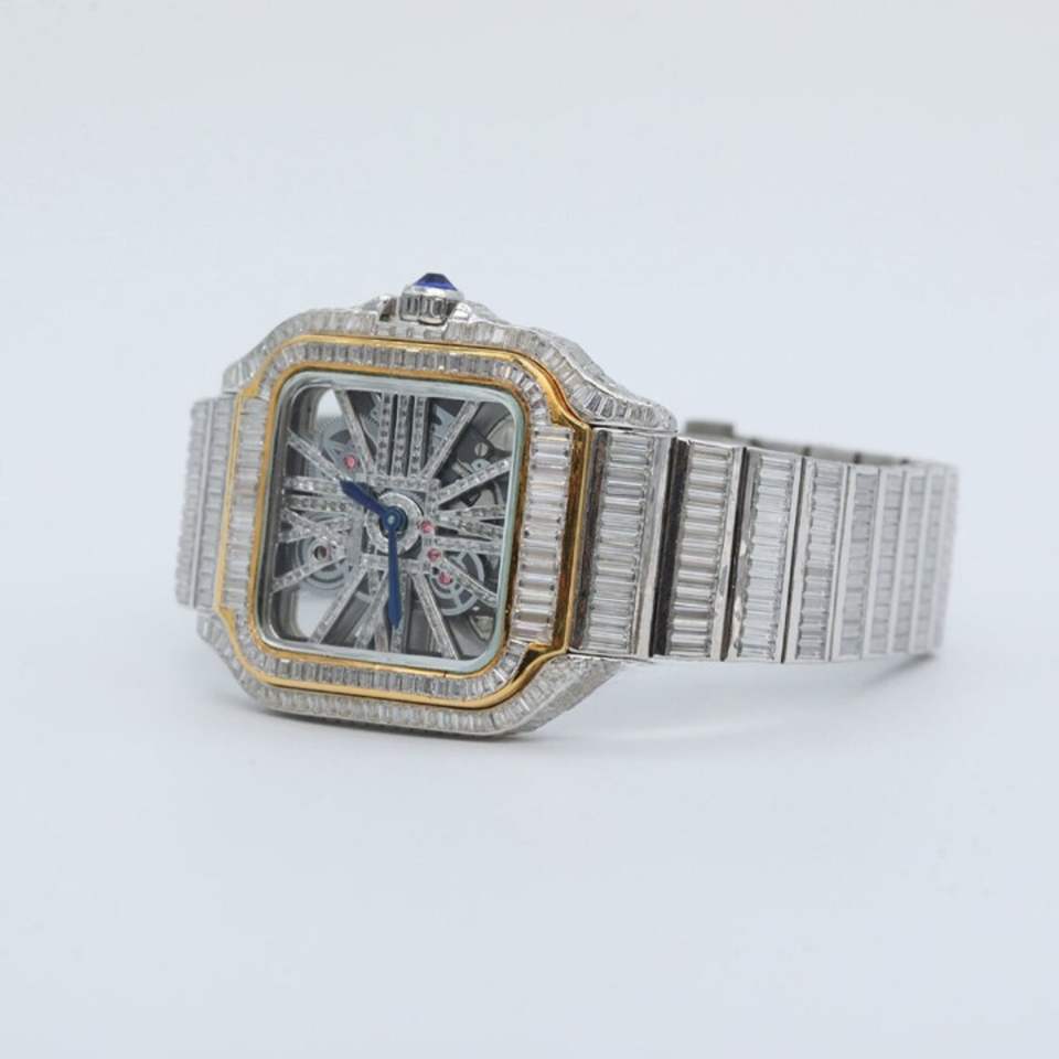 New Arrival Premium Big Face Full Custom Luxury Two Tone Band Hip Hop Diamond Vvs Moissanite Mechanical Automatic Watch for Men
