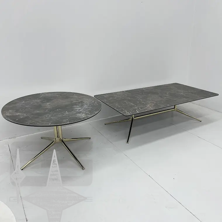 New Arrival Gold Black Metal Leg Sintered Stone Top Coffee Tale Living Room Center Tea Table Home Use Furniture
