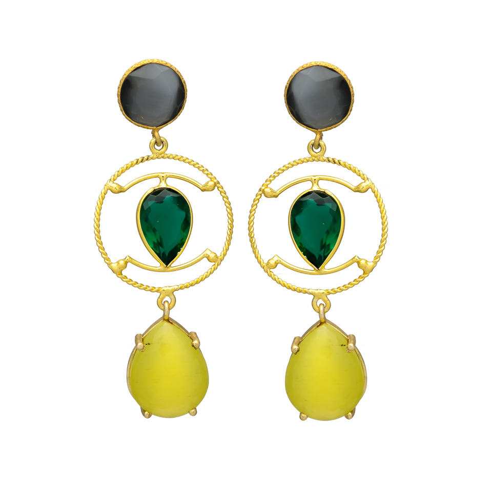 New Arrival Gold Plated Unique Design Dangle Earrings With Emerald Hydro Gemstone Brass Earrings