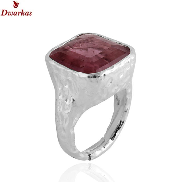 New Arrival Hammer Band 925 Sterling Silver Doublet Tourmaline Quartz Open Finger Ring for Women Men Jewelry with Setting Inlay