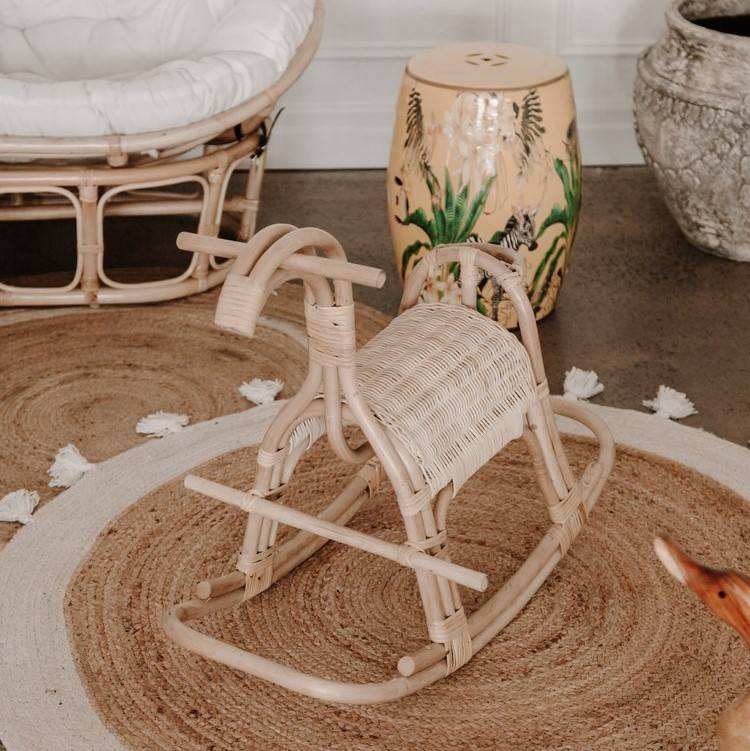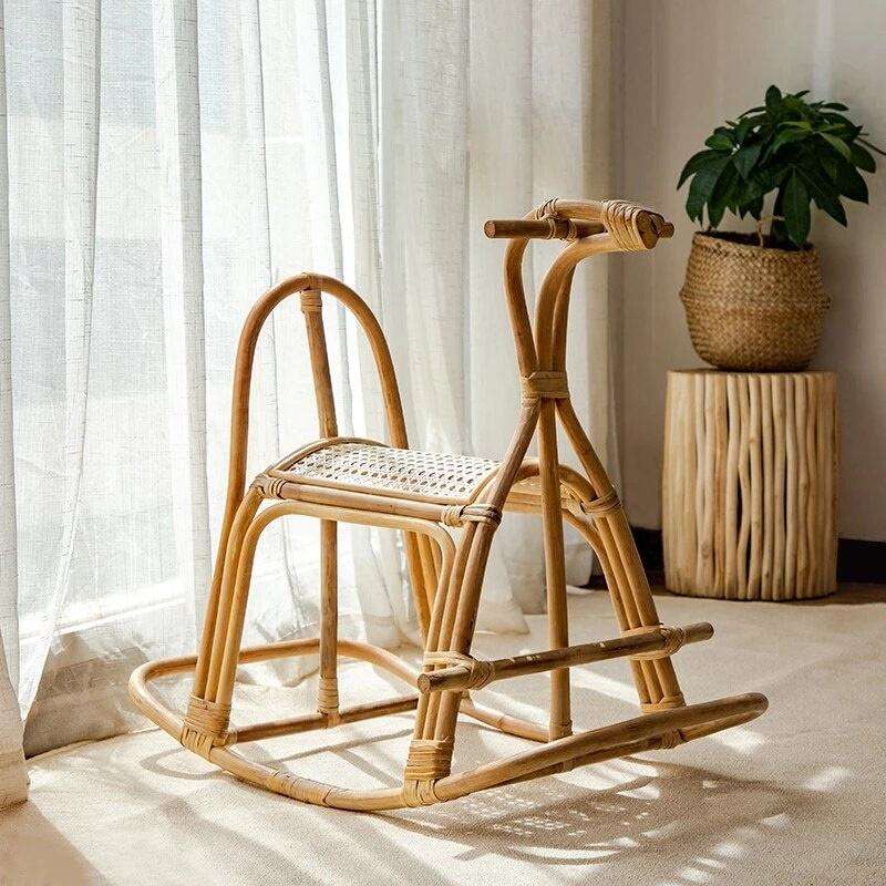 New arrival, horse-shaped children's toy rocking chair made of rattan children's room furniture for recreation parks