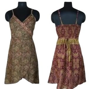 New Arrival Ladies' Vintage Style Mini Dress Casual Silk Saree with Traditional Floral Print on Sale-Mini V-Neck