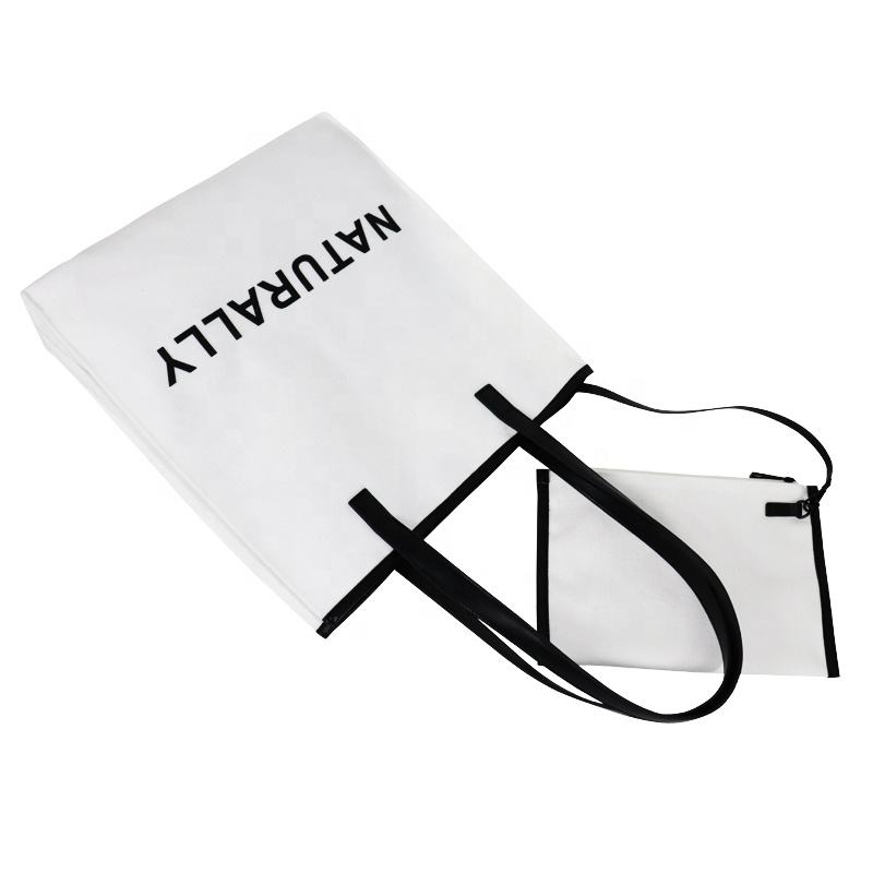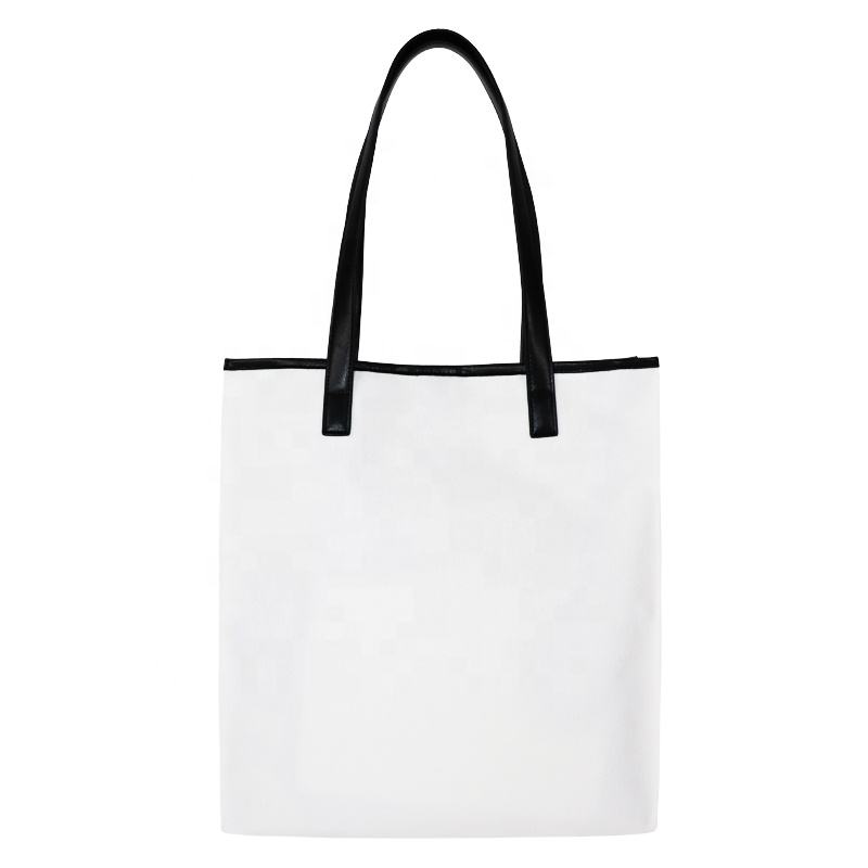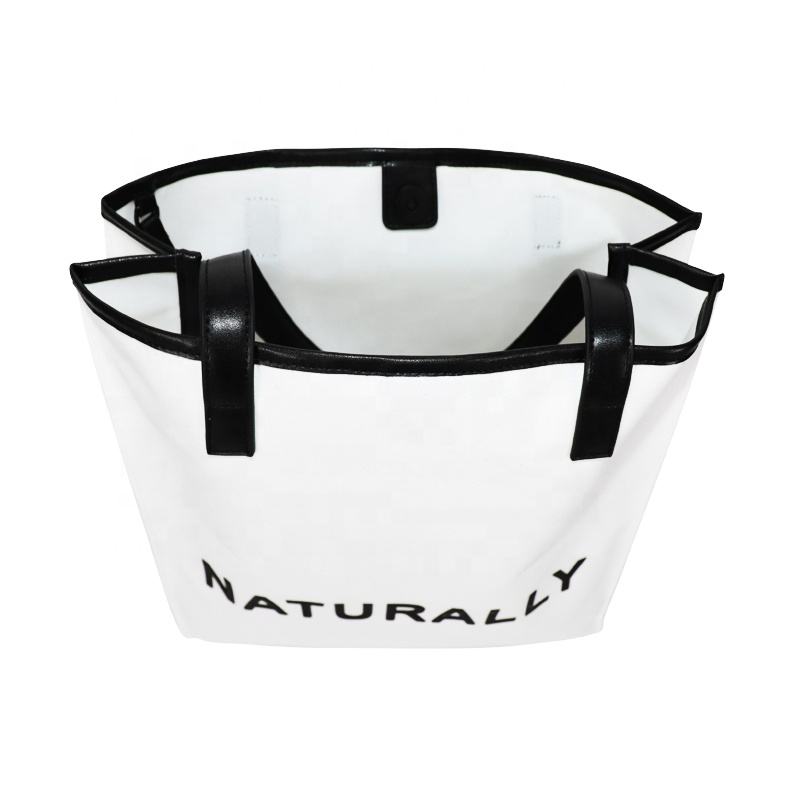 New arrival white color recycled cotton canvas tote bag with printed for ladies