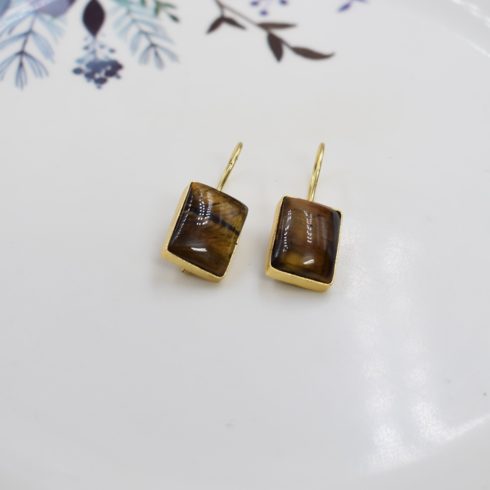 New arrival wholesale jewelry tiger eyes stone brass earrings matte gold plated handmade stone dangle earrings fashion women