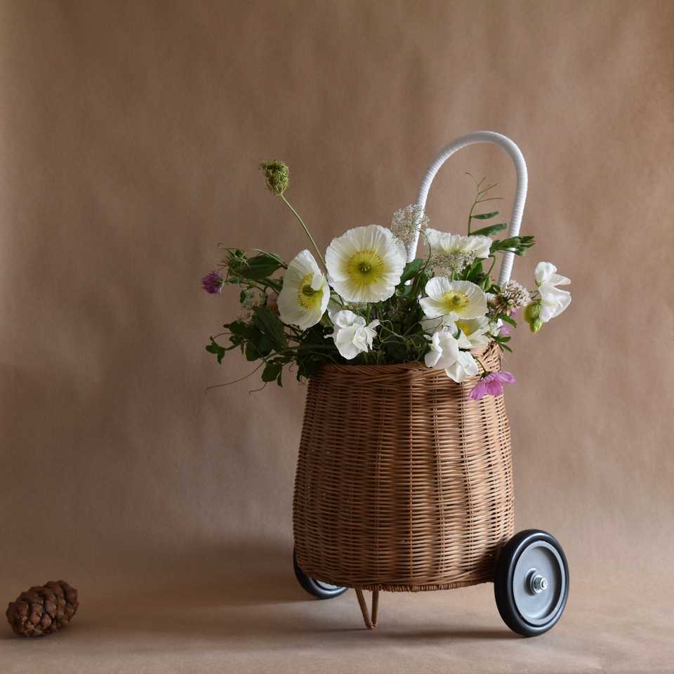 New Arrivals Hot Trend Trolly Bag Luggage Set Handwoven Rattan Moving School Bags Wheeled Baskets for Kids