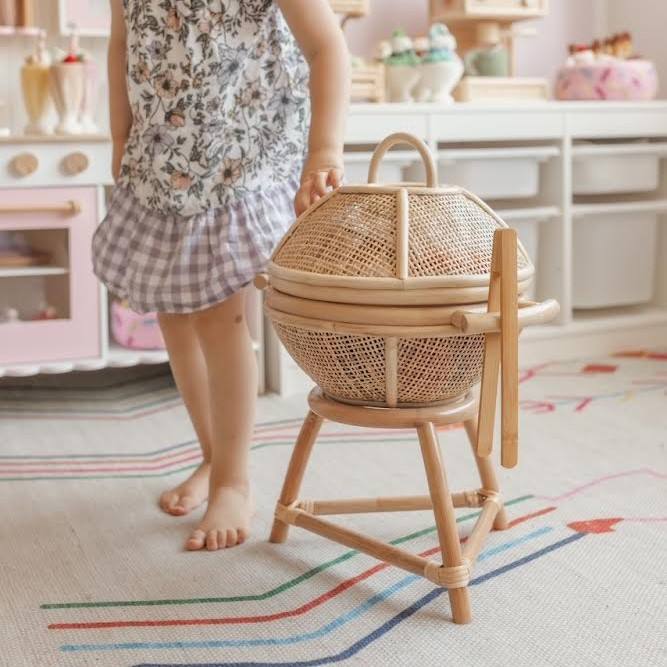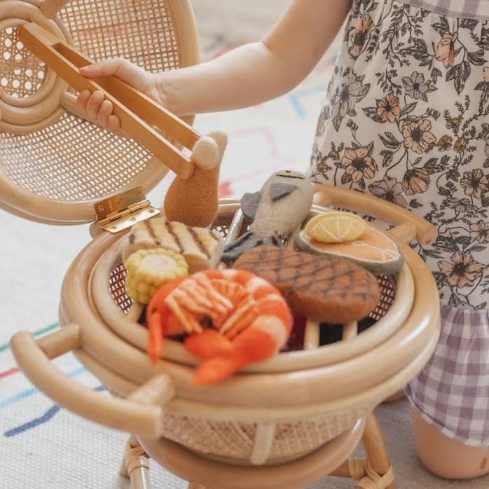 New Arrivals Small Rattan BBQ Grill Kitchen Toys Cooking Utensils Game Trendy Toy Play Set for Kids Girl