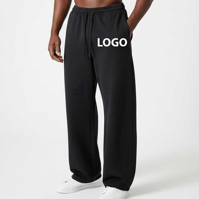 New arrived 2025 Mid weight 100% Cotton Black & white men's pants Custom DTF printed logo Oversized streetwear man trouser