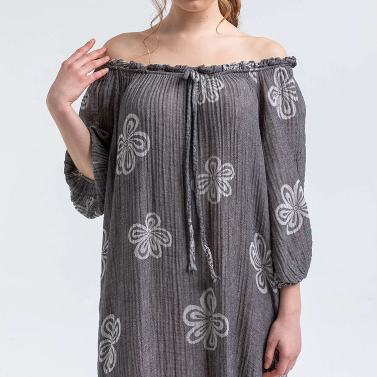 New beach print oversized round neck long-sleeved breathable casual dress custom 100% soft Cotton Maxi Dress