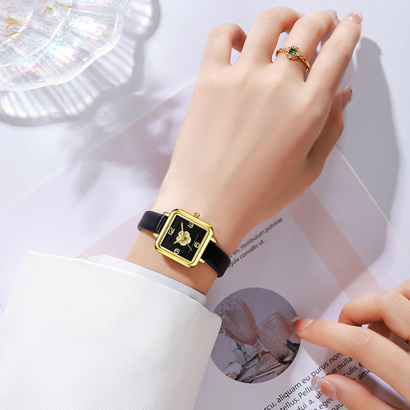 New black and gold women's watch niche style student watch high-end quartz wristwatch
