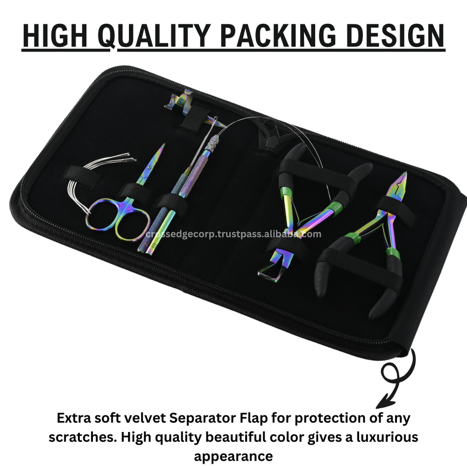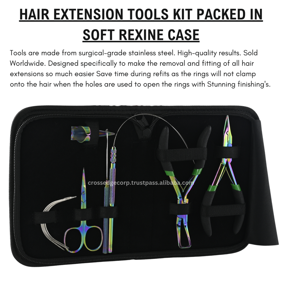 New collection Micro Link Beads Crimping Remover Plier 4pcs Sew in C Type Needle also Pulling Hook and Parting Finger Tool kit