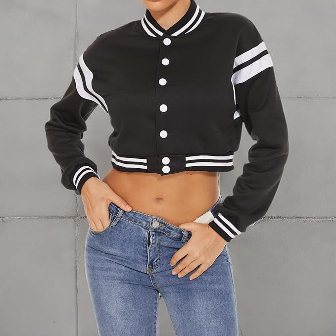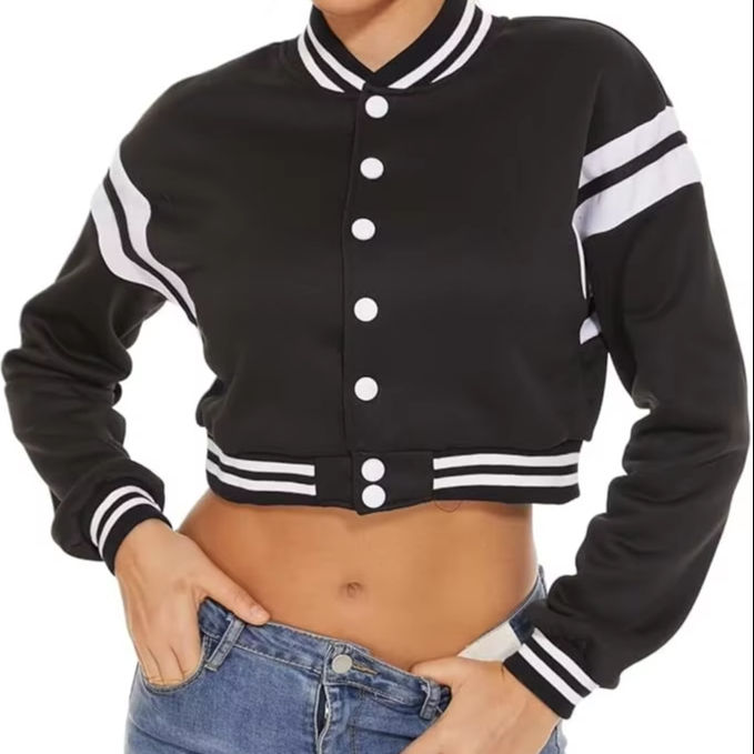 New customized Women's Varsity Jacket Long Sleeve Button Down Cropped Bomber Jackets Casual Baseball Coat