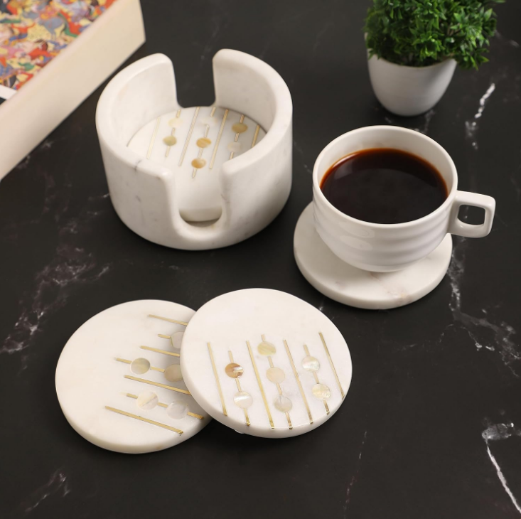 New decorative round white coaster tea coaster home kitchen office dining table tea cups coffee mugs beer cans bar water glasses