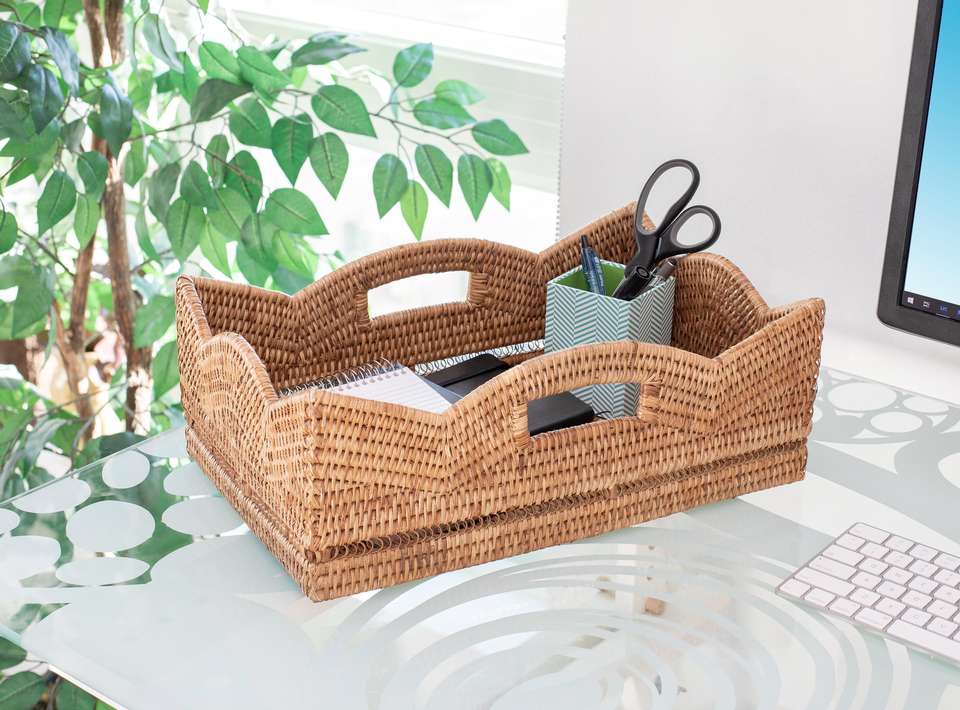 New Design Hand-Woven Rattan Serving Tray Rectangle Decorative Serving Tray for Storage Breakfast Drinks