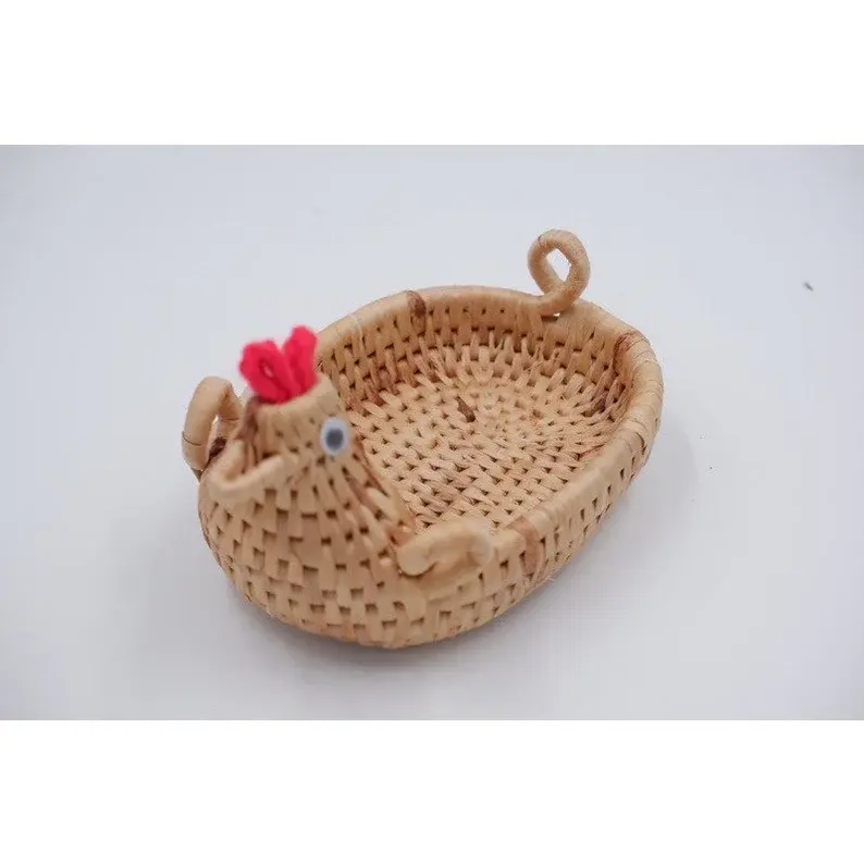 New Design Handmade Woven Natural Water Hyacinth Chicken Hen Basket Tray for Home Decor