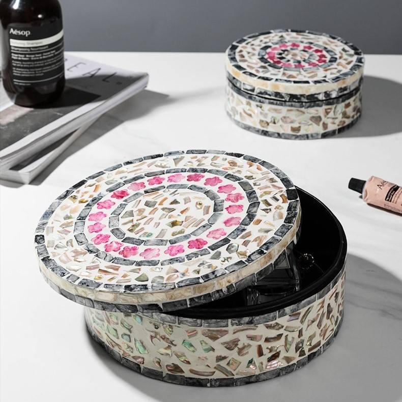 New Design Jewelry Organizer case Floral Mother of Pearls Earring Box Round Gift Boxes for Women Girls With Custom Label