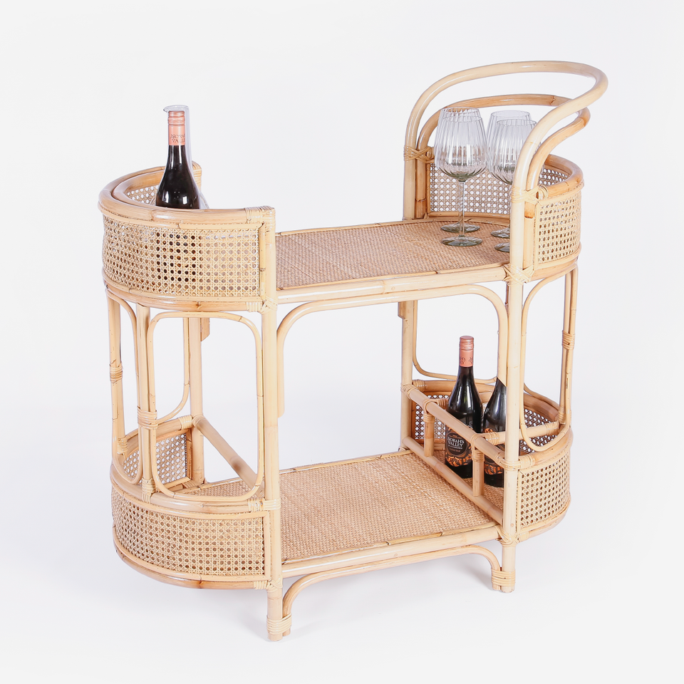 New Design Wicker Food Trolley Cart Rattan bar Drinkware Mobile Cart Trolleys Wholesale Made in Vietnam