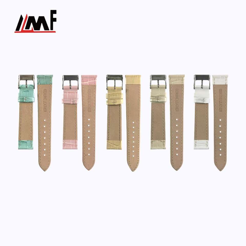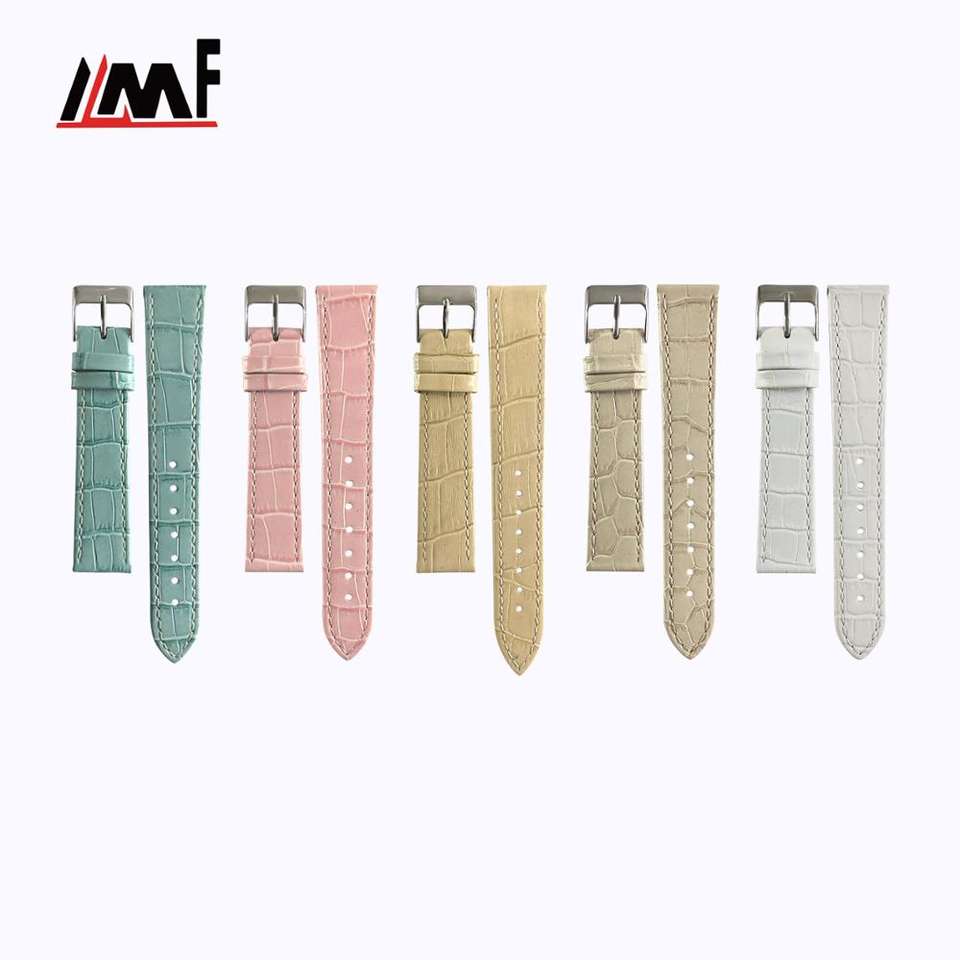 New Fashion Wholesale Custom Pale Multi-color 10mm Shiny Calf Embossed Small Alligator Grain Nubuck Leather Soft Watch Band