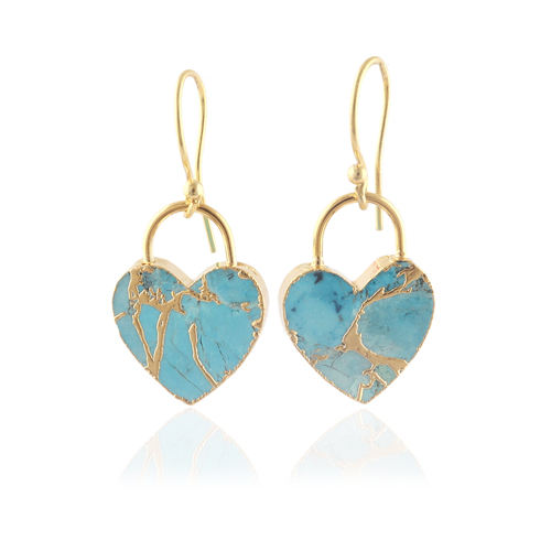 New Fashion Blue Copper Turquoise Heart Shape Earring Brass Gold Electroplated Women Wear Fashion Jewelry Drop Dangle Earrings