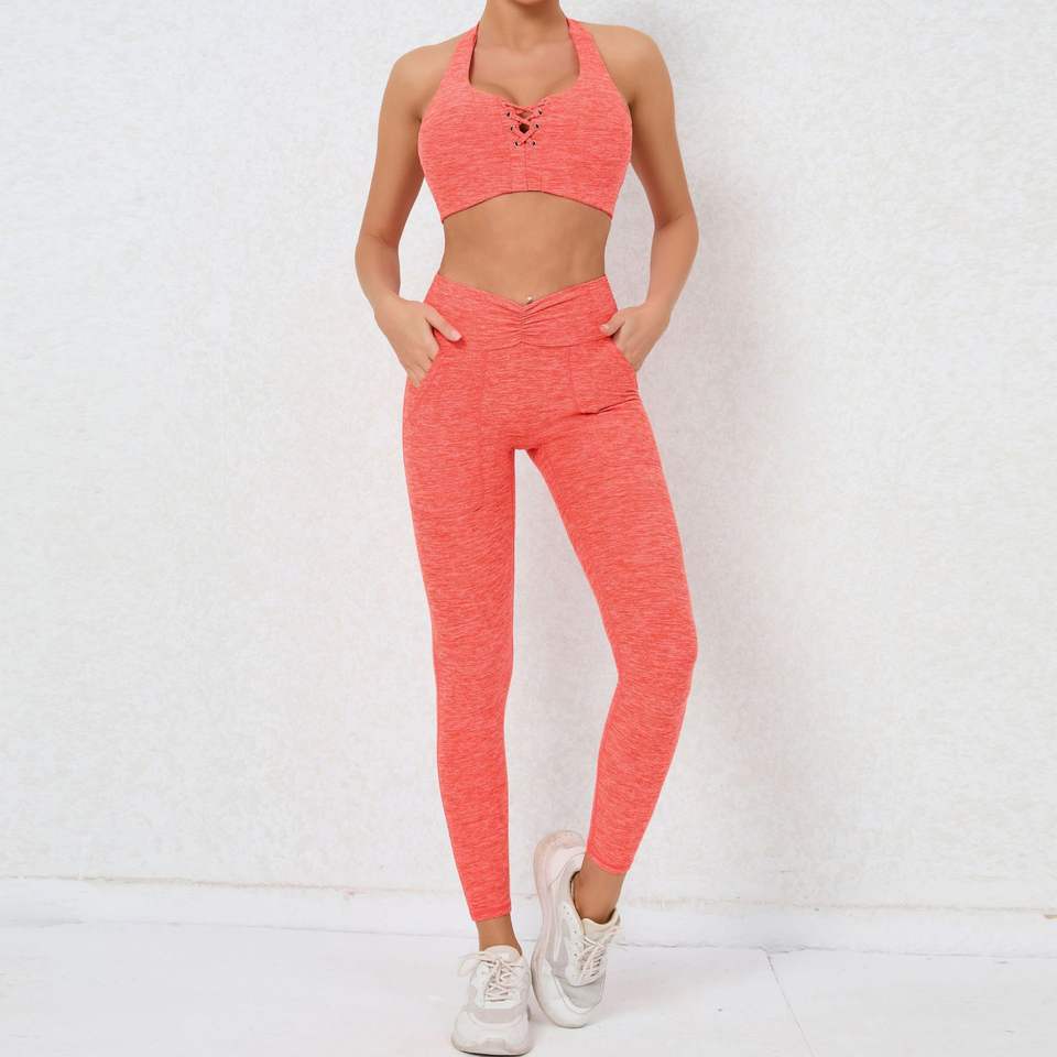 New fashion bra and legging with pocket Women Tight Yoga Sets Quick Dry Running Sports Set Fitness Bra Leggings Set