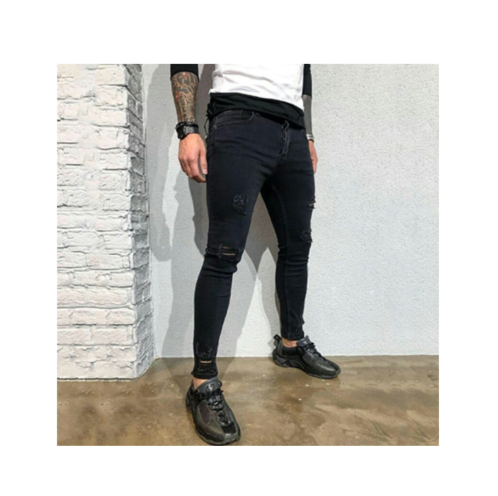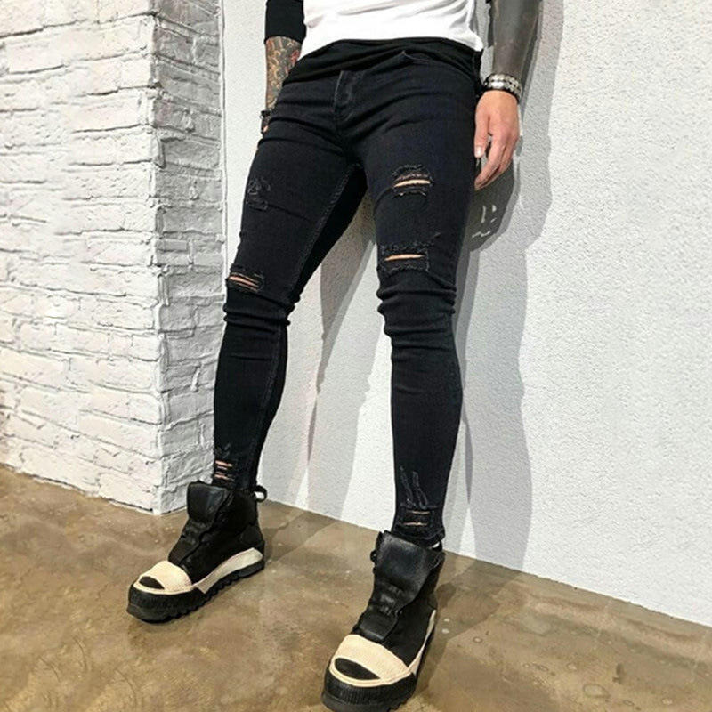 New Fashion Men's Ripped Jeans European and American Ripped Stretch Tapered Men's Jeans