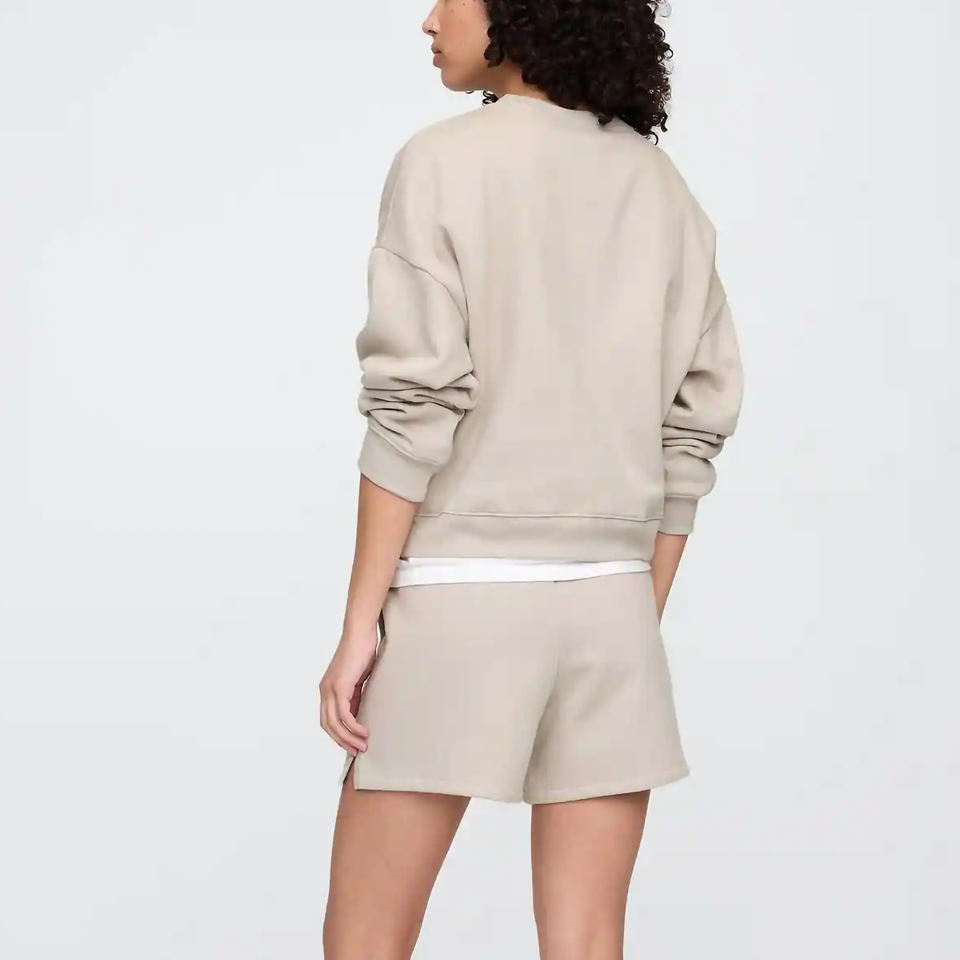 New Fashionable Women's Summer Casual 2-Piece Fleece Sweatshirt Shorts Set Oversized Solid Embroidered High Street Style 100%