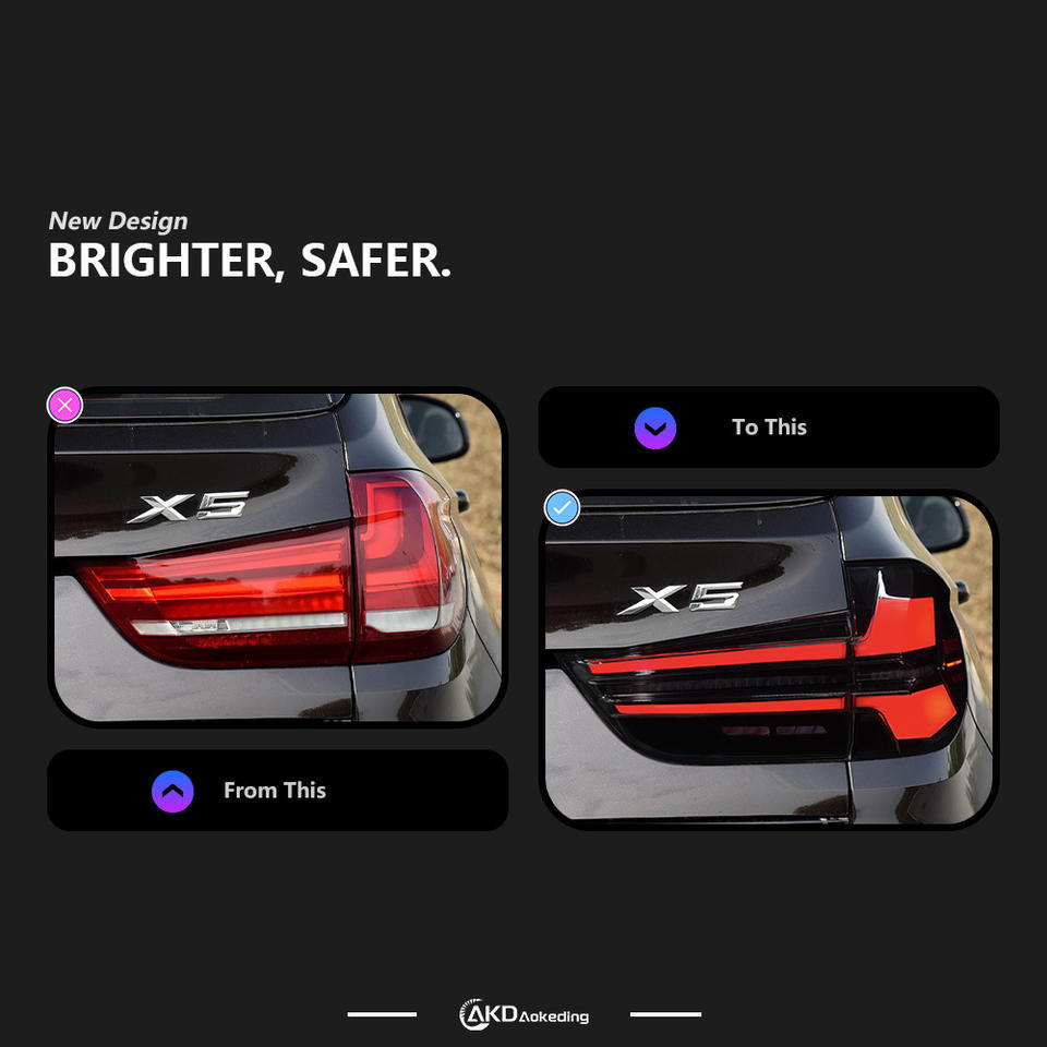 New for BMW X5 F15 LED Tail Light Assembly for 14-18 Water-Steering & Driving Brake Clear Red Lens Position Rear Bumper