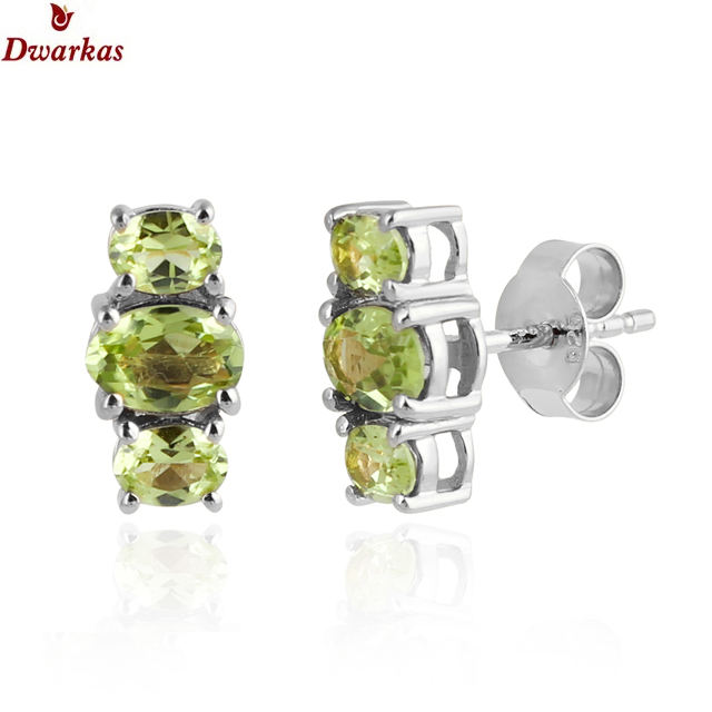 Luxury 925 sterling silver peridot three gemstone stud earrings women's high quality jewelry