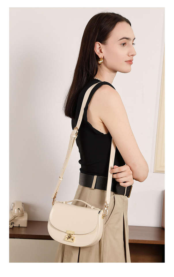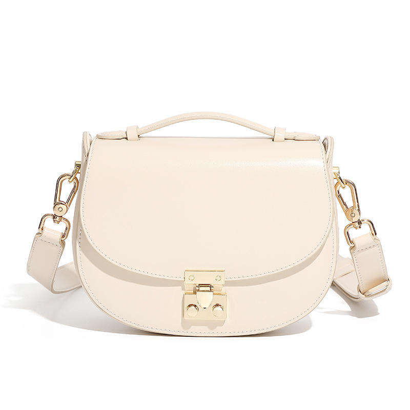 New genuine leather saddle bag, retro wide shoulder strap, button closure, polyester lining, women's fashionable crossbody bag