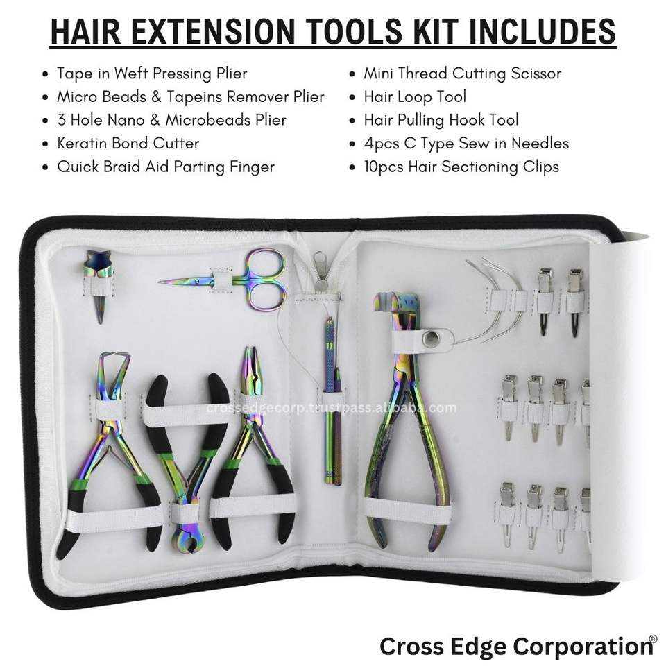 MOQ:5 case hair extensions tool kit Parting Finger tape extension plier